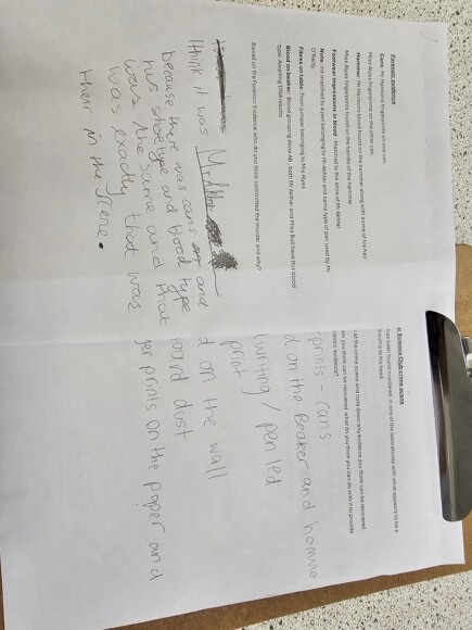 In February the year 7 forensic science club experienced a fantastic fictional murder mystery activity. Pupils used all their forensic techniques to uncover who committed the murder of Mr Hanson! A brilliant time was had by all, uncovering the evidence at the crime scene, to uncover the criminals!